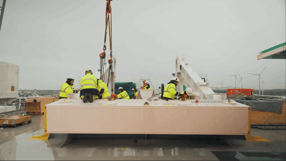 There were a few potential solutions- we chose the quickest which was to use a shorter sling. As the crane lifted the tilting base over the edge and into place—with just millimeters to spare—I felt so relieved. Then it finally slotted in perfectly. That moment was the highlight of the entire installation for me. It showed the strength of the team, the thoroughness of our planning, and the can-do attitude that defines this kind of work.