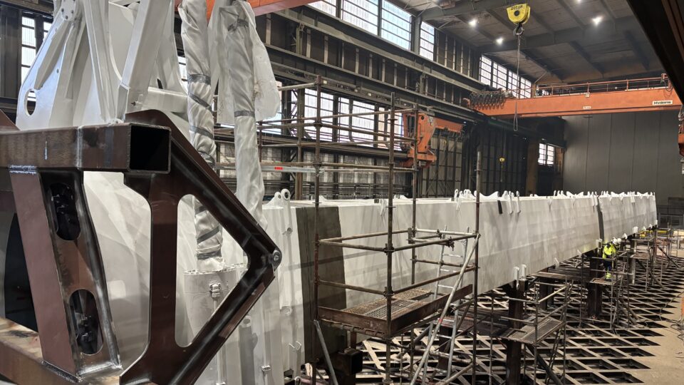 “I once again realize how tall the wing will be” says Oceanbird Senior Product Manager Jonas Alván as he stands by the massive welding table in the assembly hall in Sweden´s largest shipyard Oresund DryDocks in Landskrona.
